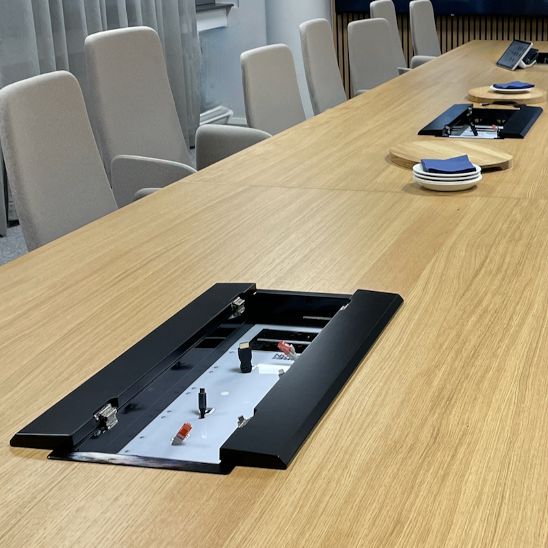 - Pöytätasolle läpivienti tai LAN (RJ45)-laitekaapeli erillistä ohjauspaneelia/muuta laitetta varten