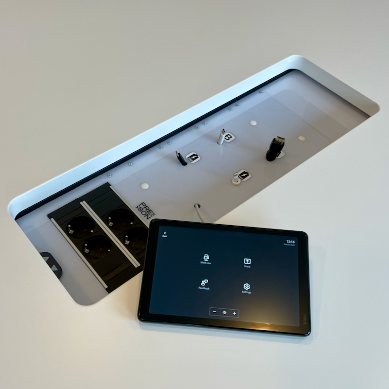 Esityskalusteen avulla käyttäjille tuodaan tarvittavat käyttökaapelit ja -sähköt siististi ja helposti. Esityskalusteessa kaapelit pysyvät ehjinä, järjestyksessä ja omilla paikoillaan. Kaapelit palautuvat automaattisesti käytön jälkeen paikoilleen vastapainomekanismin avulla. Siksi ne eivät ole pitkin pöytiä tai lattioita sotkeentumassa toisiinsa ja aiheuttamassa päänsärkyä seuraaville käyttäjille. Jos kokoustiloja on useita, Presson Interface tekee tilojen käytettävyyden samanlaiseksi.