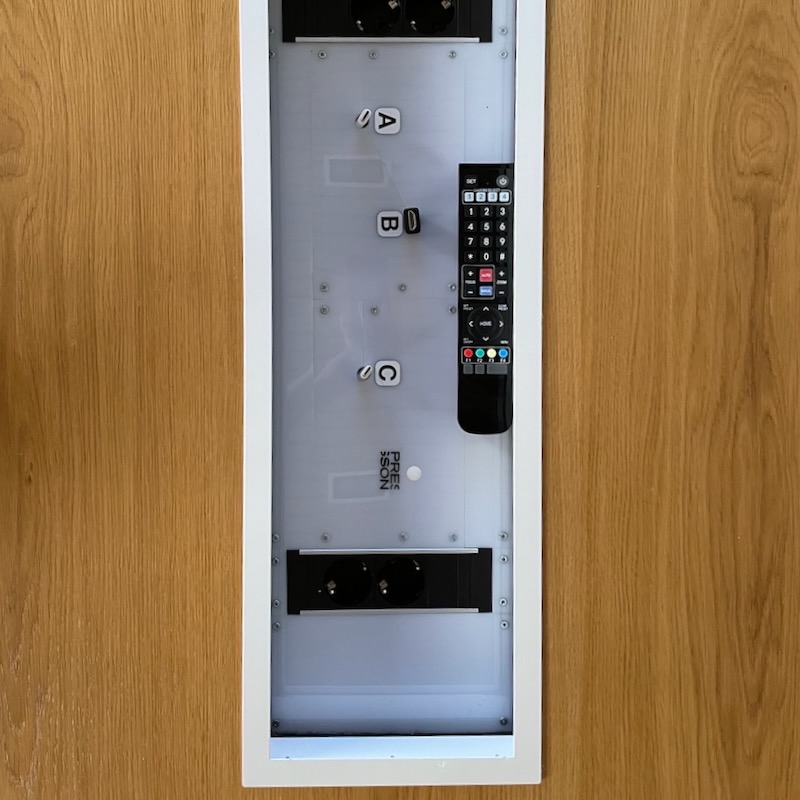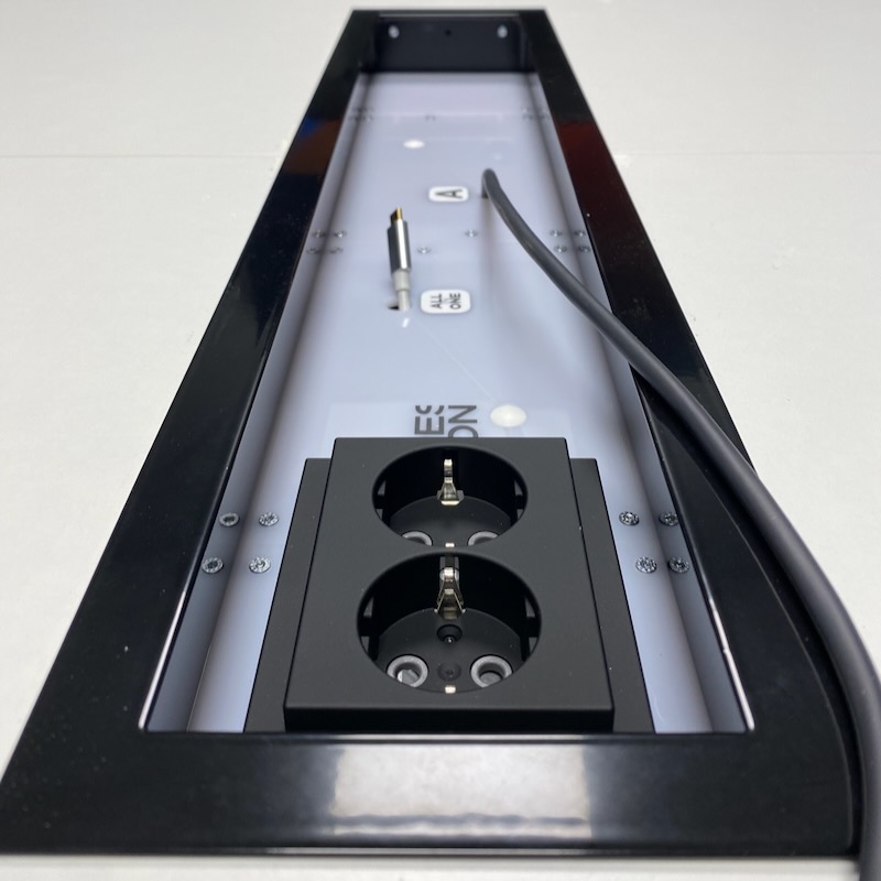 Metallisen Frame -kehyksen voi helposti asentaa niin uuteen kuin jo olemassa olevaan pöytään. Frame siistii työstöjäljen ja vakiomitoitus on suunniteltu siten, että asennuksen voi tehdä aiemman luukun tilalle hiukan suurentamalla pöydässä jo valmiiksi ollevaa aukko.