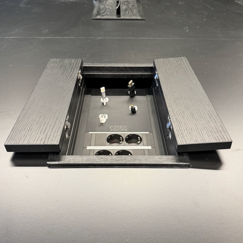 Lid-pöytäluukulla viimeistellään pöydän aukotus niin ettei työstöjälki jää näkyviin. Luukun voi asentaa sekä uuteen että vanhaan kokouspöytään. Lid parantaa pöytäkaivon käytettävyyttä huomattavasti paremmalle tasolle kuin yleisesti käytössä olevat pöytäluukut esim. näkymä esityskalustee käyttölittymän on optimaalinen, luukun reunt ei jää näkymän päälle tms. Presson Lid -pöytäluukun mitoitus on suunniteltu siten, että sen voi asentaa aiemman luukun tilalle suurentamalla pöydässä jo valmiiksi ollutta aukkoa.