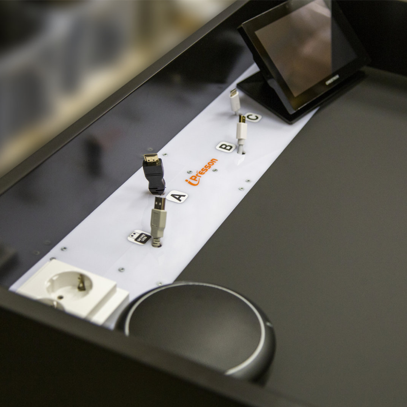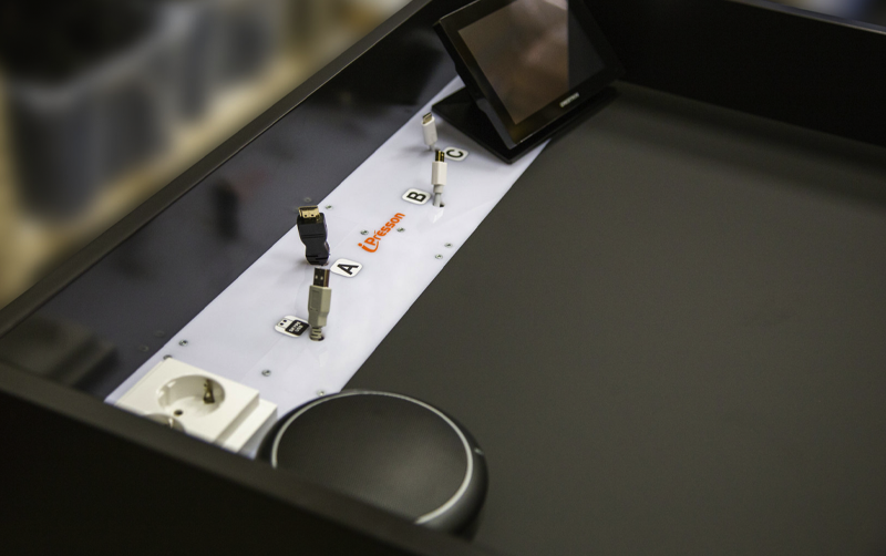 Cabin -näyttökaluste piilottaa tekniikan näkyvistä silloin, kun sitä ei tarvita. Näyttökaluste pitää sisällään hissimekanismin, jonka avulla näyttö saadaan napin painalluksella näkyviin tai pois näkyvistä. Kaluste mahdollistaa näytön asennuksen tiloihin, joissa ei haluta tekniikan olevan esillä koko ajan tai se sijoitettaisiin esim. ikkunan eteen. Näyttökaluste voidaan asentaa pöydän päätyyn, seinän viereen tai vaikka keskelle huonetta. Kaluste voidaan toimittaa vanhoihin tai uusiin neuvottelutiloihin, eikä se ole myöskään tekniikkariippuvainen toimiakseen. Lisävarusteena mahdollisuus asentaa kätevät pyörät, jolloin kaluste on helppo siirtää tilasta toiseen.
